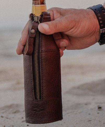Campaign Leather Bottle Koozie in Smoke