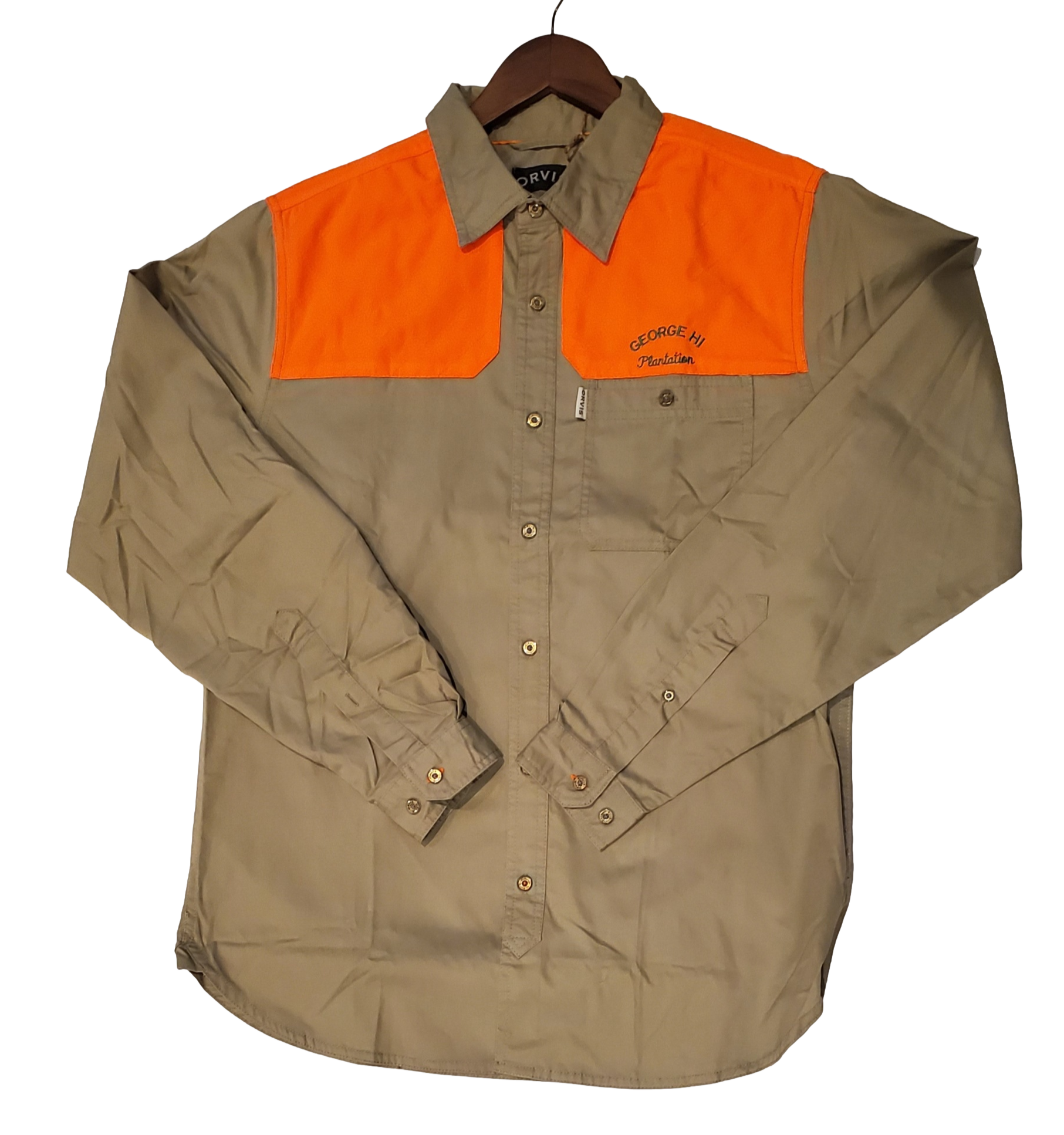 Your go-to shirt for cooler days in the field. Its just the right fabric for those brisk, early fall mornings. Includes the George Hi Plantation Logo.